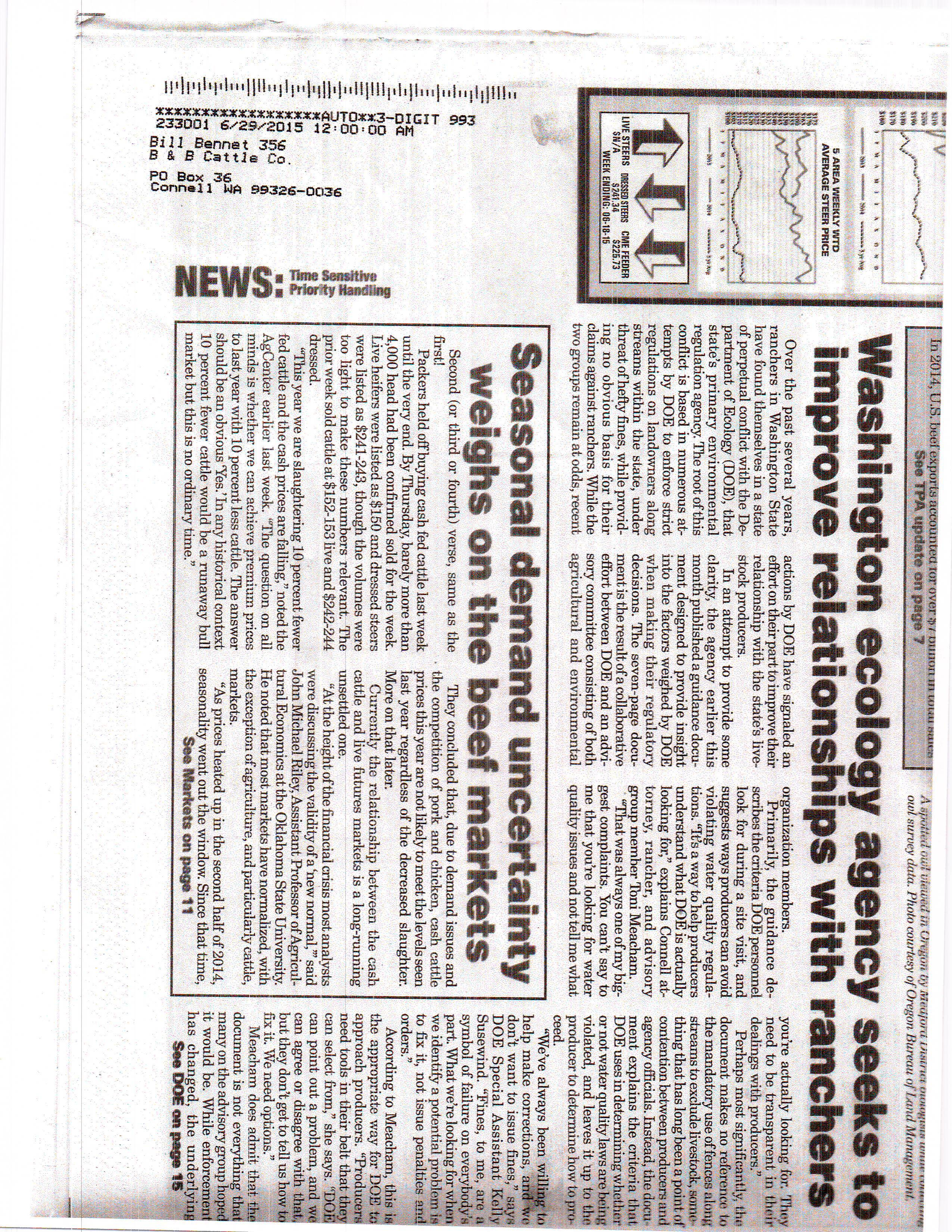 With standing room only, every seat in the room filled, the regular meeting of the AG & WATER QUALITY ADVISORY COMMITTEE MEETING was called to order on June 4, 2015 – 1:00 pm in Sprague, WA. Vic began the meeting as Co-Chair, but let the body of the committee know that this was his last meeting as chair; Aaron Goliday ended the meeting as the new Co-Chair.