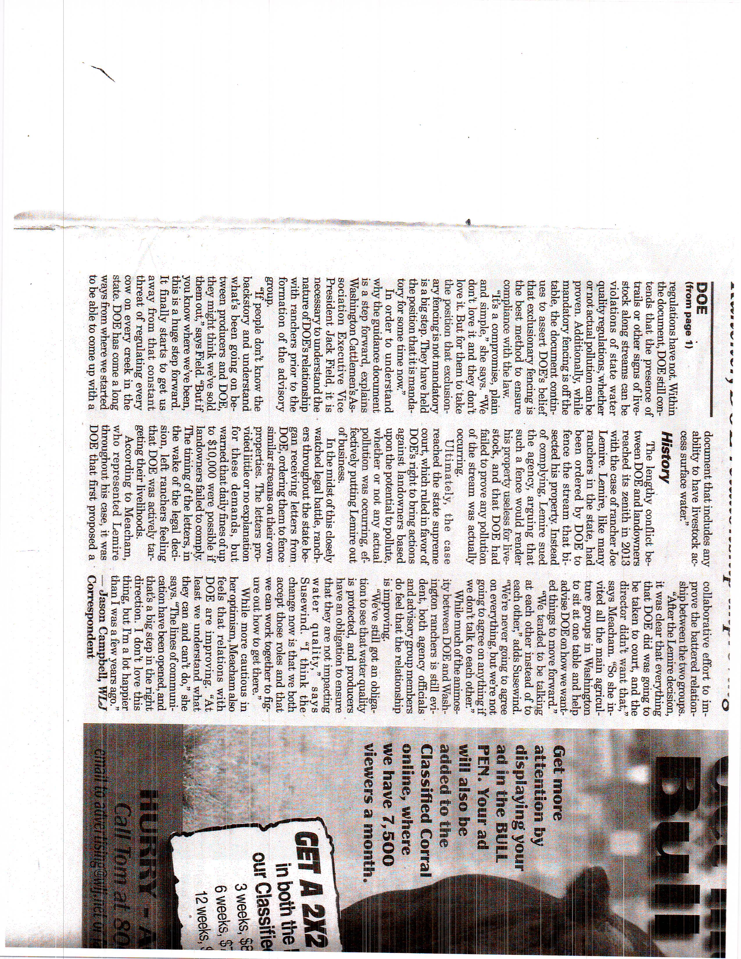 Updates: In the CAFO permitting development, DOE will consider the Consent Decree entered in the Yakima Dairy case litigation as the consent decree has what DOE considers to be some positive points. Comments on the non-point source update were due this month – June 5th. WCA submitted excellent comments that were drafted by our intern then firmed up prior to submission.